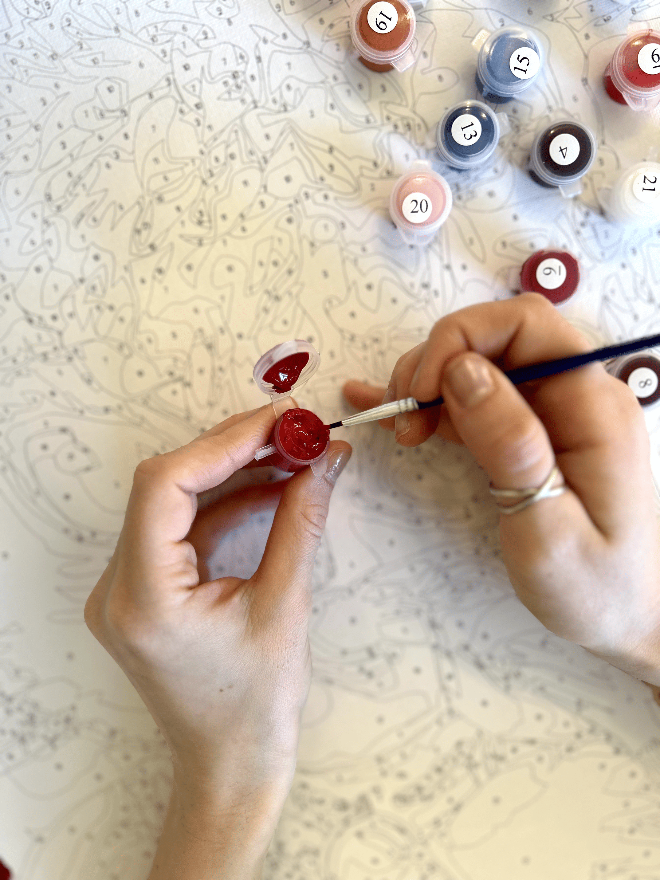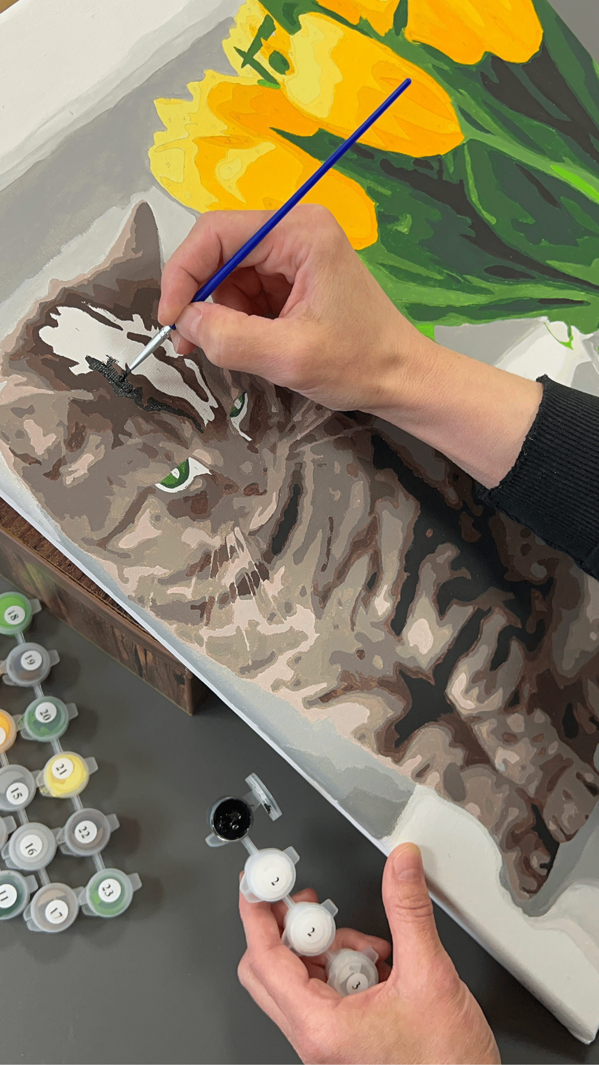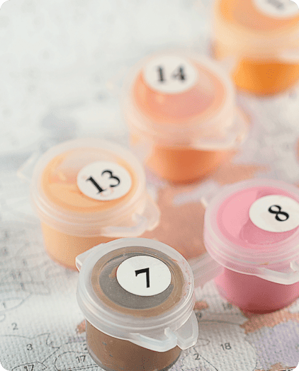 Акрилові фарби на водній основі повністю перекривають номери на картинах. Насичена пігментація передає базові кольори та найменші відтінки. Фарби є безпечними, не викликають алергічних реакцій і подразнення шкіри.